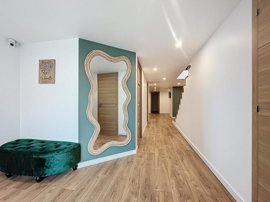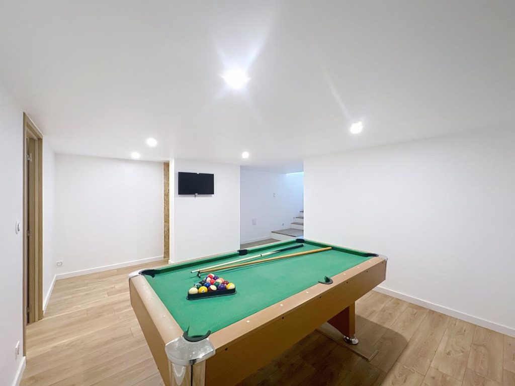 Au rez-de-chaussée : une entrée avec placard, local technique, cellier/buanderie, une chambre, une salle de jeux, une chambre avec dressing et salle d'eau,