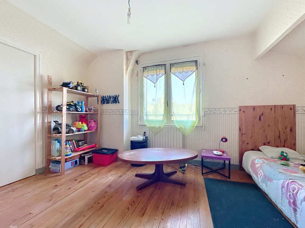 Au 1er étage : un dégagement, trois chambres de 12,3 m², 9.7, et 11 m², un bureau, un WC séparé, une salle d'eau, un grenier