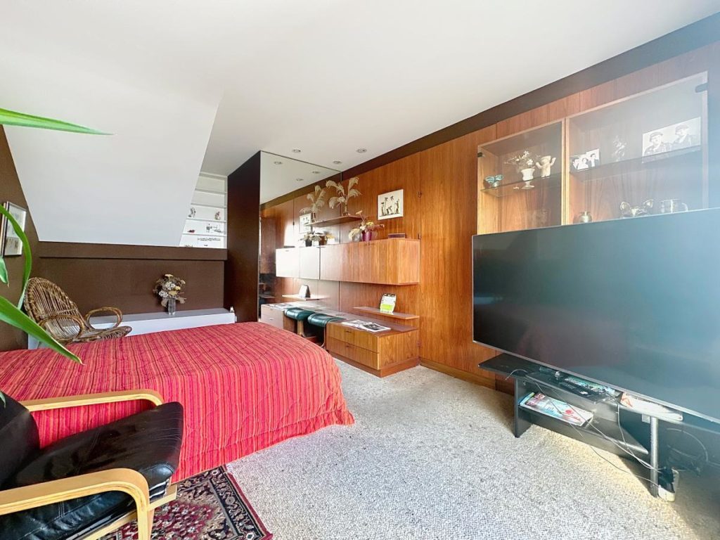 Au 1er : séjour- salon (cheminée), bar vitrine avec cuisine et salle de bain à moderniser, très belle chambre, terrasse unique avec son jardin japonais.