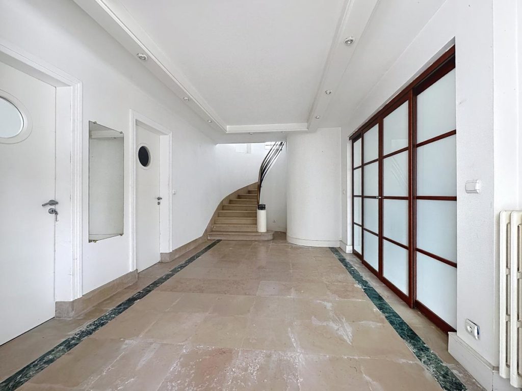Au 1er étage : un salon/séjour de 47 m², une cuisine de 19 m², un dégagement, un WC séparé, une salle de bains, trois chambres de 16, 17, et 18m², une salle d'eau avec WC,