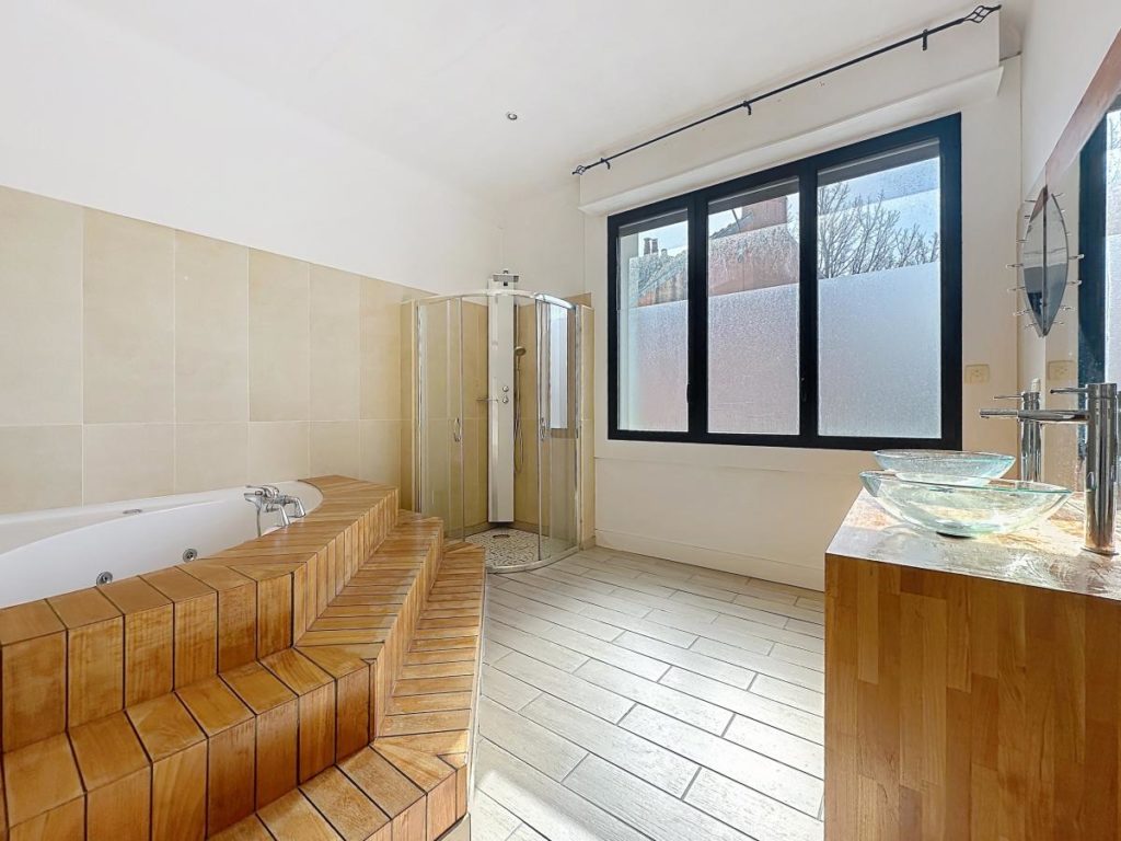 Une terrasse avec piscine et Jacuzzi, un double garage de 44 m²