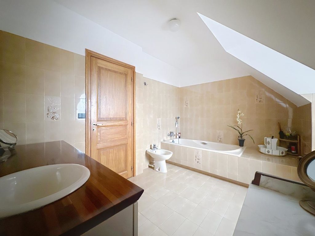 Au 1er étage : un dégagement avec placard, trois chambres de 12, 11 et 10 m², un WC séparé et une salle de bains