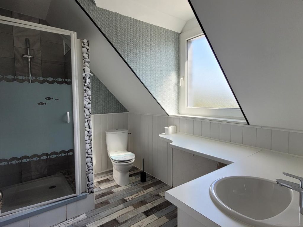 Enfin, une seconde extension offre un grand garage. Au-dessus, accessible grâce a un escalier extérieur, un appartement de type 2 avec pièce de vie et cuisine ouverte, une chambre, une salle de douche avec WC. Communiquant avec la maison principale, ce logement peut aussi constituer une source de revenus locatifs.